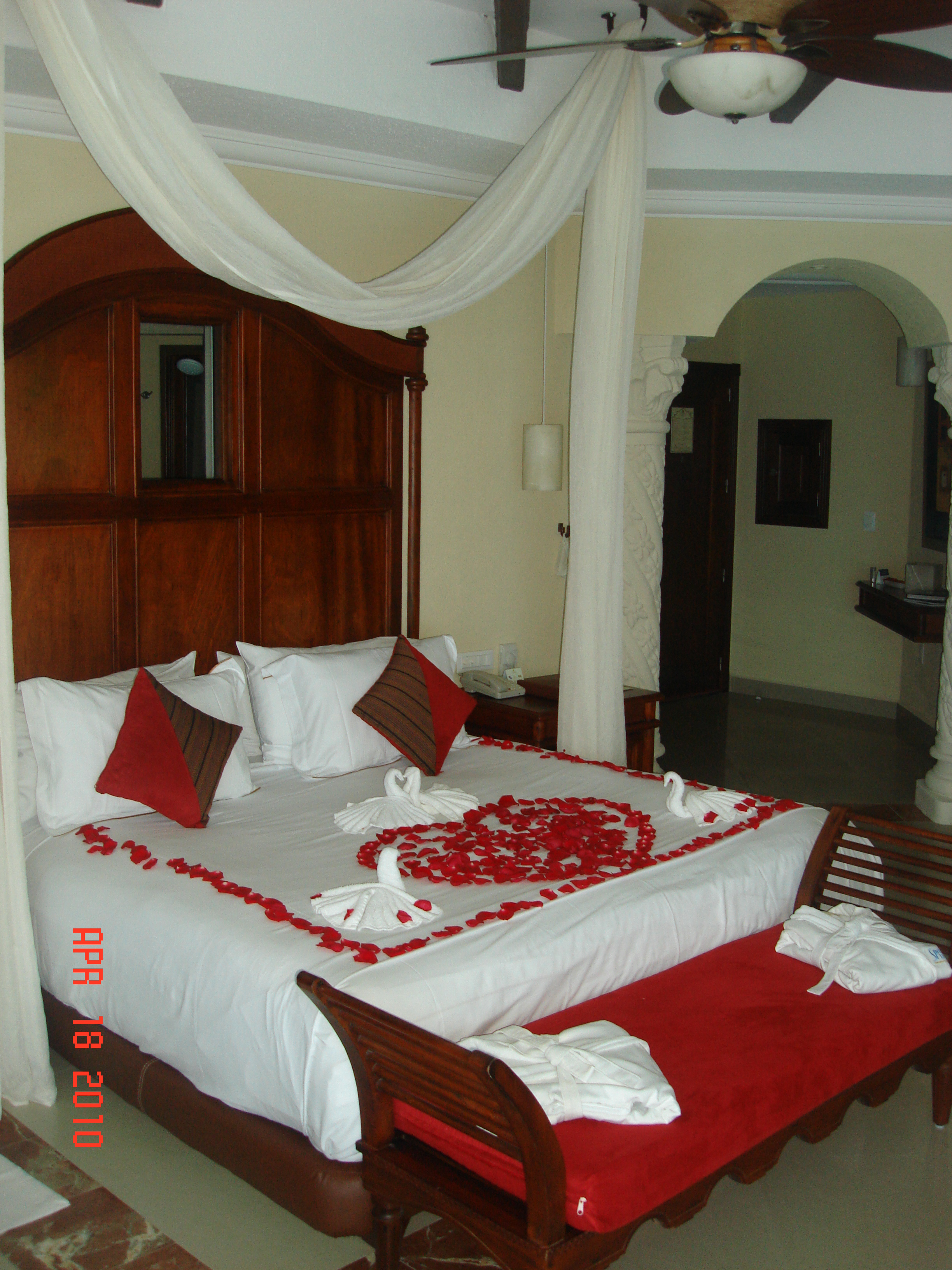 Our shuttle picked us up from the airport. We arrived at the resort and it was just beautiful. Not too large either. Just perfect! After registering in a private registration area while drinking champagne we went to our room. There were rose petals on the bed, champagne on ice, chocolate covered strawberries and other sweets and an amazing view of the ocean. It couldn’t have been better.